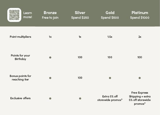 “Points Balance” means the points balance displayed in a Rewards Member’s account at a point in time from Valid Purchases.Points are earned by customers spending in store or online at Purebaby, and the number of points is dependent on their current Tier Status.